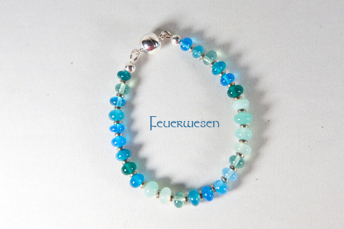 Das Armband ist in vielen Farben erhältlich, jede Glasperle ist ein Unikat