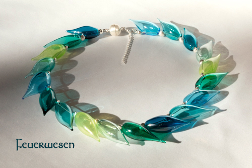 Feinste Röhrchen aus Muranoglas machen die Kette extrem leicht!