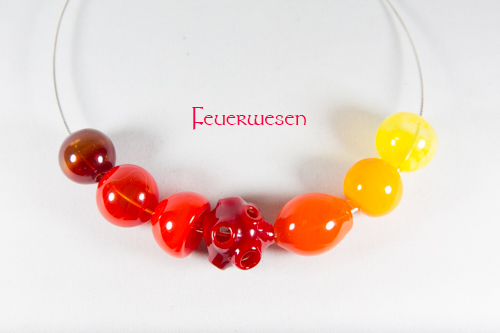 Dieses rote Lauschaglas hat mich im Februar 2013 in Lauscha fasziniert. Zuhause entstanden diese Hohlperlen.